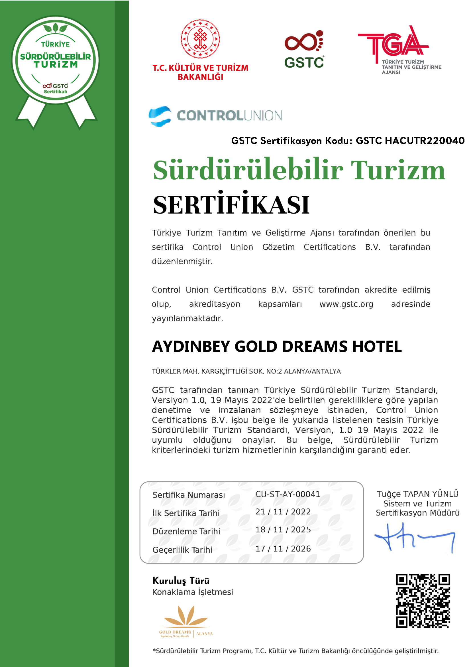 Sürdürülebilir Turizm Sertifikası (Türkçe)